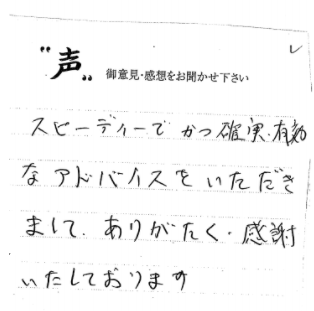 て答えて下さった事で不安が解消されました。これから法的事務的な事をできる限り