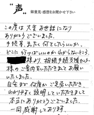 また、義父が亡くなってからは相続放棄の件に関し、小さな悩みにも随時対応して