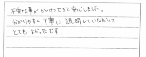 奈良県:不安な事がかいけつできて安心しました 2026 1/30 ご相談者の声 2026.01.30 不安な事がかいけつできて安心しました。分かりやすく丁寧に説明していただいて とても良かったです。 【お客様の声 NO.1060】 ご相談者の声 東大阪市:‟なんて誠実な方なのだろう” 神戸市垂水区:お陰様で今は穏やかに日々をすごしています 関連記事 神戸市灘区 2019.10.24 神戸市垂水区:お陰様で今は穏やかに日々をすごしています 2020.02.05 神戸市長田区 2020.12.23 西宮市 2019.01.26 京都府八幡市 2020.11.07 神戸市西区 2019.08.29 神戸市灘区 2019.01.22 神戸市東灘区 2019.12.24