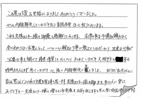 今後も困っておられる方々の力になっていかれますようお願い致します。