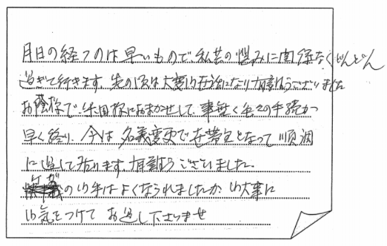 経済状態がよくなれば名義変更の件でまたご相談させていただきたく存じます。