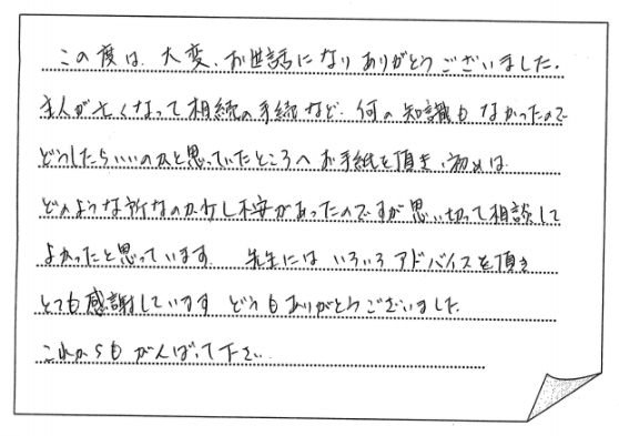 いずれはしなくてはならない事でしたが、相談にのってくださった方の親切な対応とこ