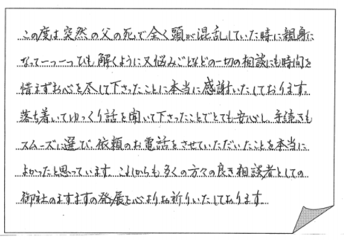 相続手続きに関する知識がなかったことから、貴センターの案内を思い出し、