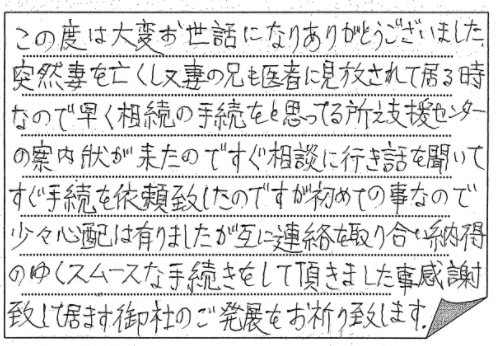 主人の突然の別れで悲しみに負っていた中、相続や財産の手続等手につかず、そんな