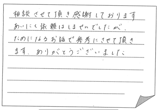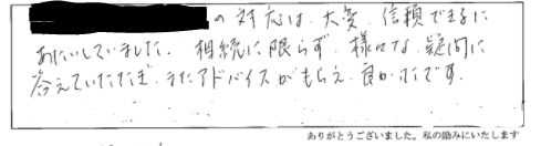 て答えて下さった事で不安が解消されました。これから法的事務的な事をできる限り