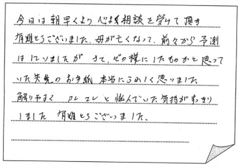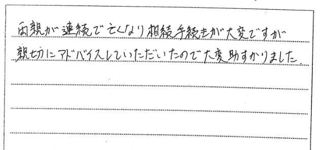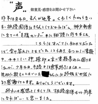 主人の突然の別れで悲しみに負っていた中、相続や財産の手続等手につかず、そんな