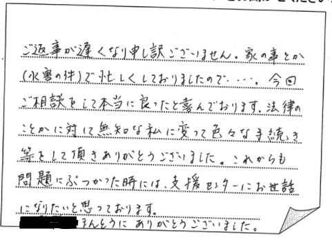 て答えて下さった事で不安が解消されました。これから法的事務的な事をできる限り