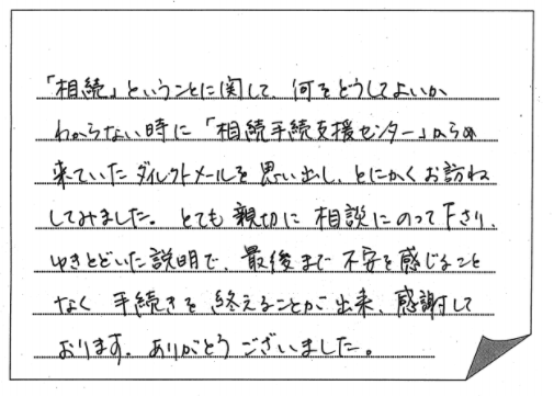 事は分からないし、後回しにすればいいと思っていました。相続の手続や財産の法的