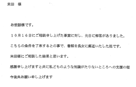 相談に乗っていただけることが出来ると思うと心強く感じております。