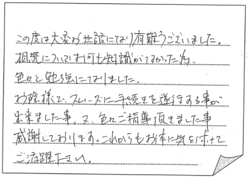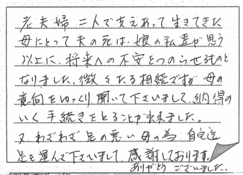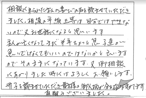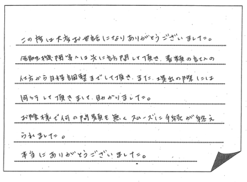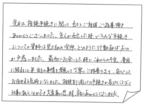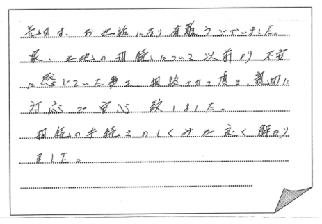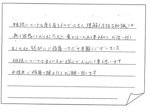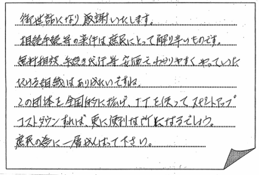 法律の事など無知な私共にとって先生方の手伝いが大変ありがたく思い、