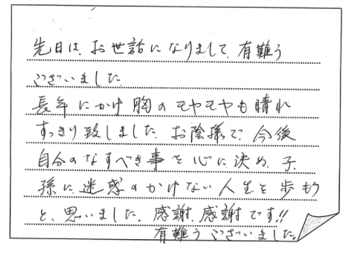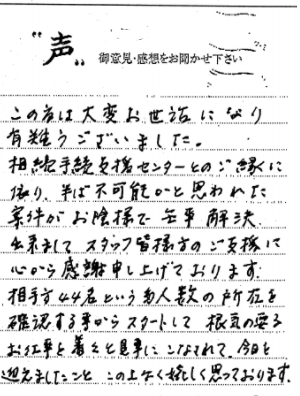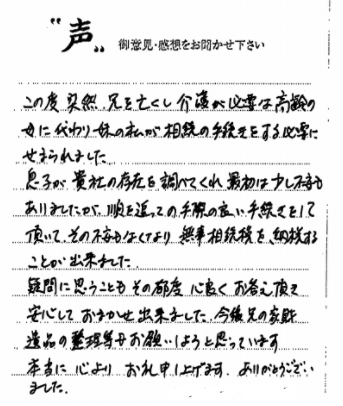無事に祖父の相続が終了致しました。本当にありがとうございました。今回の相続は