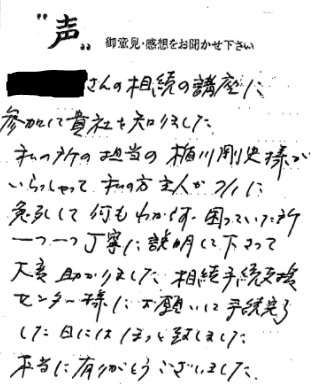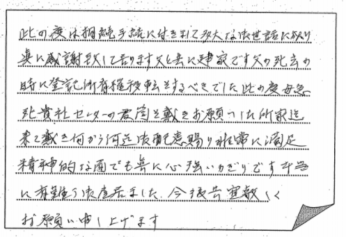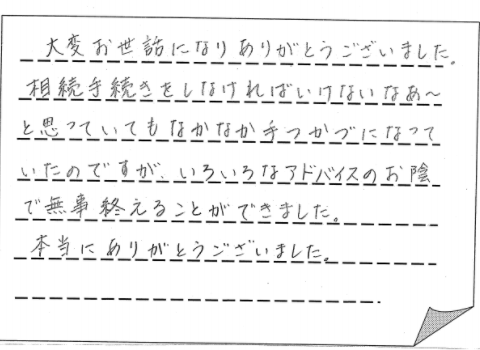 無事に祖父の相続が終了致しました。本当にありがとうございました。今回の相続は