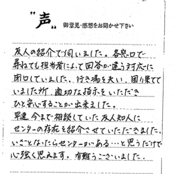 れほどありがたかったか。また身近で悩んでいる人がいれば是非とも紹介したい所で