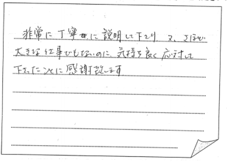 取り、説明を伺う事としました。丁寧な説明と親切な対応、リーズナブルな見積も