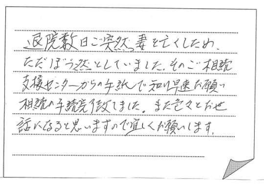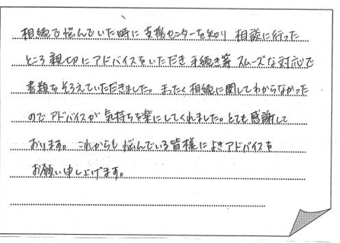 きました。お世話になりました。これからも相続に関してお困りの方々の為にご活躍