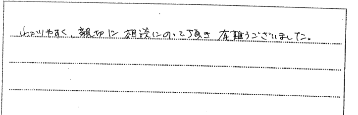 に思っていたことなども丁寧な説明、対応をして頂き、安心して進めていくことがで