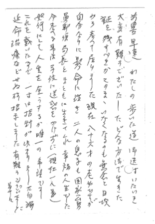 倒されておりました。救いの手を差し伸べて頂きまして、助けて頂きました事を心か