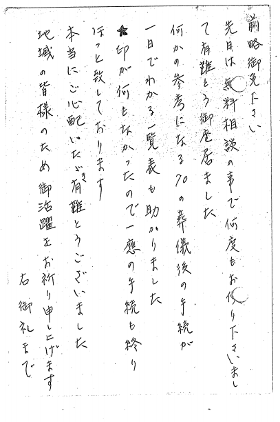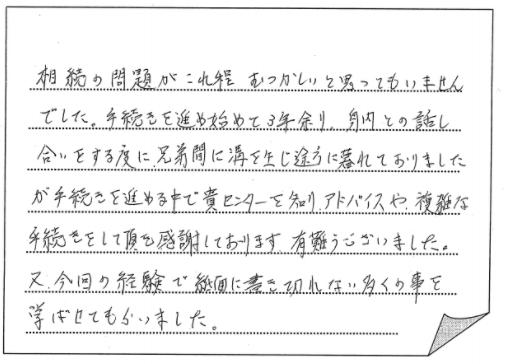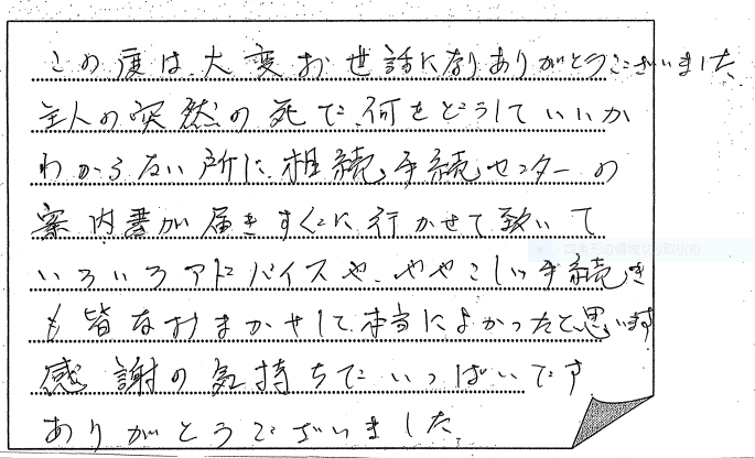 相続手続きまで全面的にサポート頂き、本当にありがとうございました。あの複雑で膨
