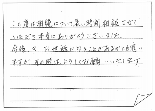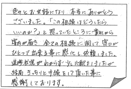達の立場に寄り添って頂き、何のストレスも感じることなく、無事、相続を終えるこ