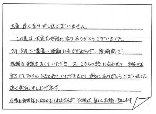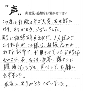 つのらせておりましたが、「相続手続き支援センター」の事を教えて頂き、早速お願