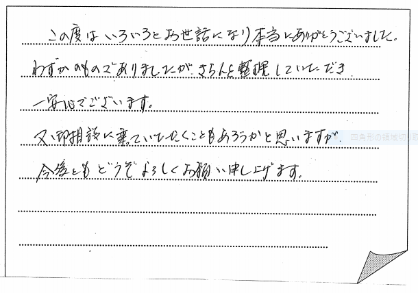 明石市 2021 3/08 ご相談者の声 2021.02.07 何から手をつければいいかわからず悩んでいる中、無料相談で手続き手順などとても わかりやすく説明していただき、とても安心できました。最後までスムーズに運び、 とても満足しております。ありがとうございました。 【お客様の声 NO.802】 ご相談者の声 神戸市灘区 神戸市東灘区 関連記事 三木市 2019.02.10 西宮市 2020.12.29 三木市 2020.03.22 神戸市東灘区 2019.05.01 神戸市:色々細かな疑問まで分かりやすく教えていただき、感謝しています 2023.12.14 神戸市灘区 2019.12.01 埼玉県さいたま市:ご依頼してよかったです 2022.04.02 神戸市垂水区 2019.07.17