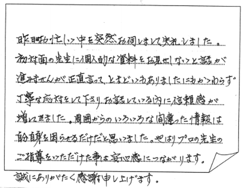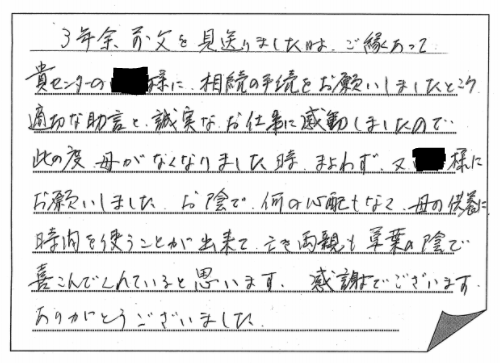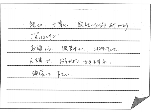 〇〇〇〇〇〇にお伺いいたしました。御親切にしていただきましてどうも有難う御座い