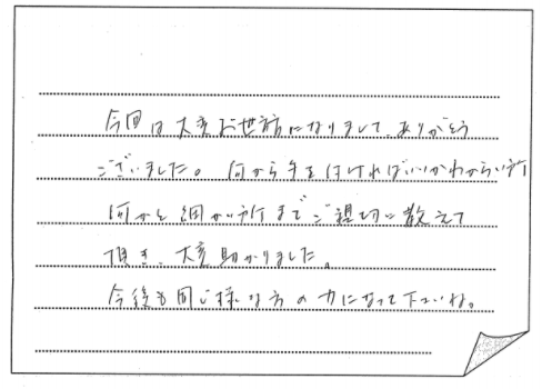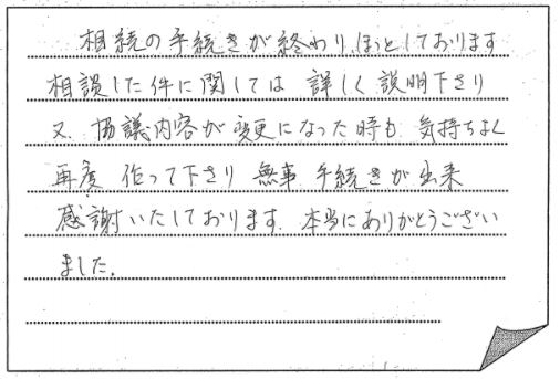 この度は、関係者の皆様の誠実且つ丁寧な対応により、無事名義変更手続きが完