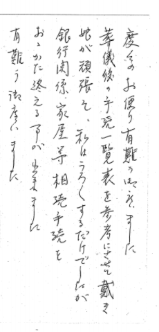 神戸市須磨区:非常にわかりやすく、今後の参考になりました 2024 12/04 ご相談者の声 2024.03.26 非常にわかりやすく、今後の参考になりました。 【お客様の声 NO.979】 ご相談者の声 神戸市垂水区:ざっくばらんに回答説明いただき、もやもやがはれました 【終活チェック➋】銀行口座を整理しましょう! 関連記事 神戸市中央区 2019.10.25 神戸市垂水区 2019.04.17 西宮市 2020.01.05 神戸市北区 2020.10.13 姫路市:大変分り易くご説明いただきました 2025.04.09 加古川市 2019.06.09 神戸市灘区 2019.09.18 神戸市北区:相続問題及手続きに関し具体的などよく理解できました 2024.03.26