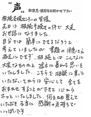 明石市:非常にていねいで、わかりやすい説明でした 2024 12/04 ご相談者の声 2024.03.26 非常にていねいで、わかりやすい説明でした。 ありがとうございました。 【お客様の声 NO.983】 ご相談者の声 トレカを子どもの玩具と侮るなかれ! 神戸市:ご親切にお聞き下さり有難うございました 関連記事 神戸市中央区 2019.12.28 島根県出雲市 2020.11.28 神戸市長田区:大変お世話になりました 2024.05.11 明石市:関係者の皆様の誠実且つ丁寧な対応により、無事名義変更手続きが完了しました 2023.12.14 明石市 2020.09.08 神戸市北区 2021.02.22 神戸市西区:支援センターがあることすら知らなかった 2019.03.15 神戸市東灘区 2020.01.30
