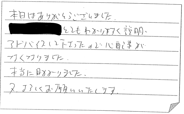 神戸市北区:とてもわかりやすい説明、アドバイスで心配事がなくなりました