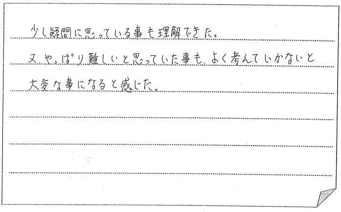 神戸市北区:少し疑問に思っている事も理解できました