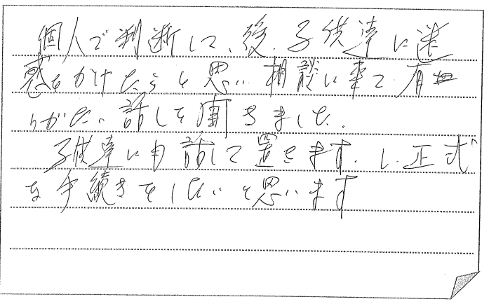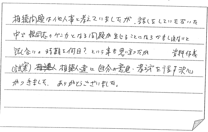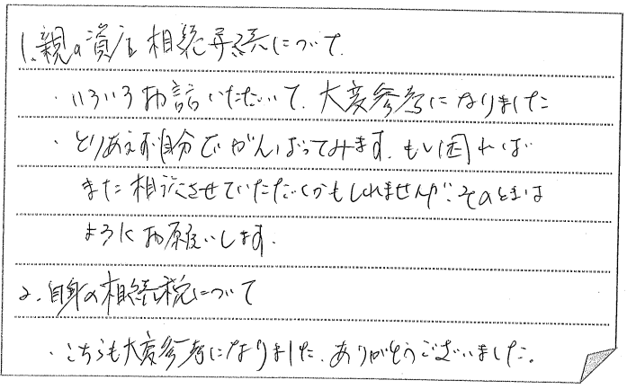 相続問題及手続きに関し具体的などよく理解できました。【お客様の声 NO.975】&nb... -
