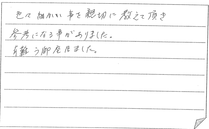 神戸市北区:色々細かい事を親切に教えて頂き参考になる事がありました