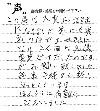 この度は大変お世話になりました。前にも実家の件でお世話になり、こん回は名義変... -