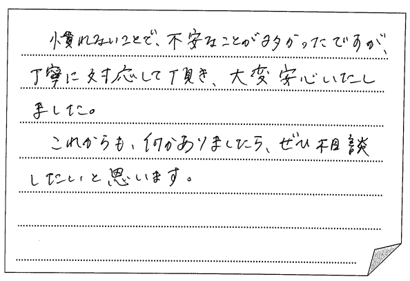 神戸市中央区:丁寧に対応して頂き、大変安心いたしました
