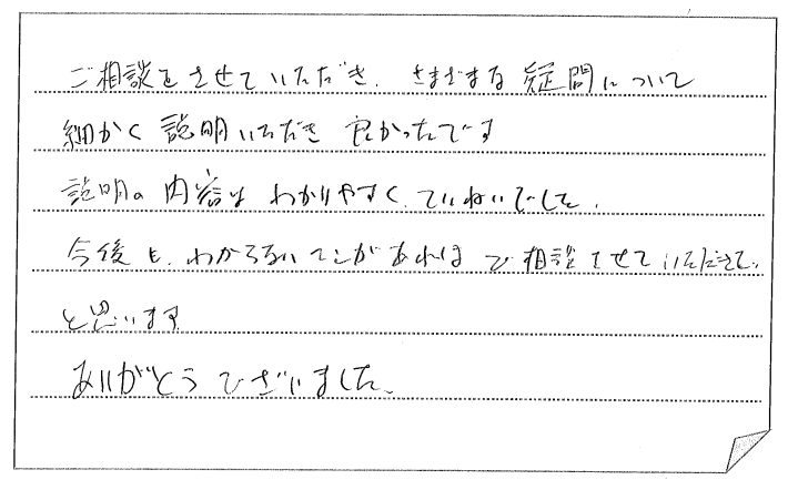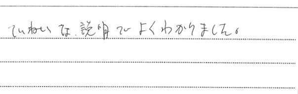 神戸市西区:詳しい説明で明確に理解でき安心いたしました