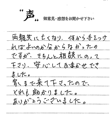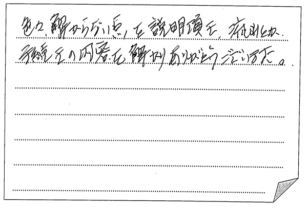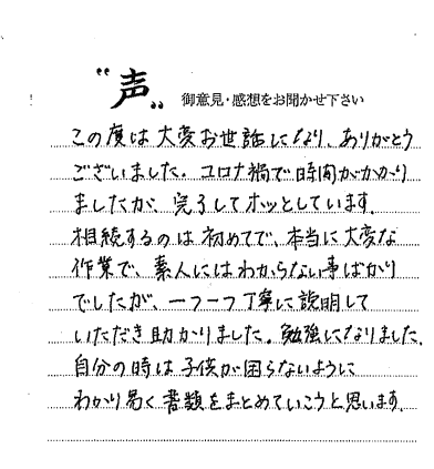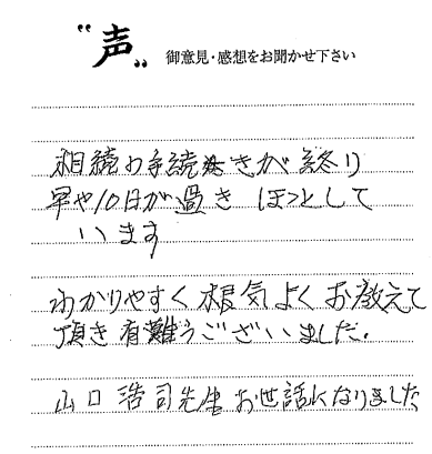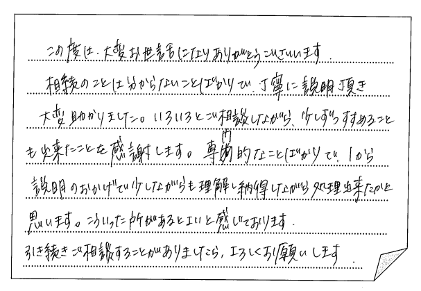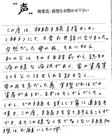 この度は、相続手続支援センター(神戸)にて、大変お世話になりました。突然だっ... -