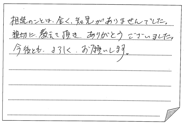 相続のことは、全く知見がありませんでした。親切に教えて頂き、ありがとうござい... -