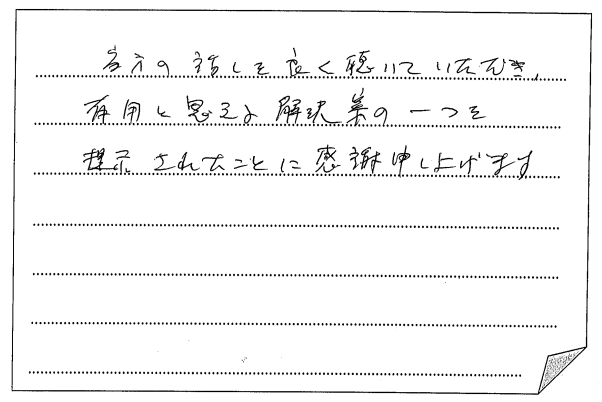 神戸市須磨区:有用と思える解決策を提示されたことに感謝申し上げます
