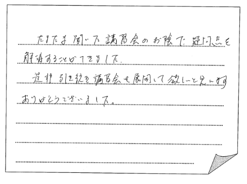 たまたま聞いた講演会のお陰で、疑問点を解消することができました。是非引き続き... -