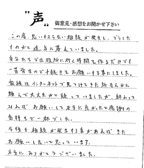 大阪市鶴見区:誠意ある対応、よりそう優しさを感じました