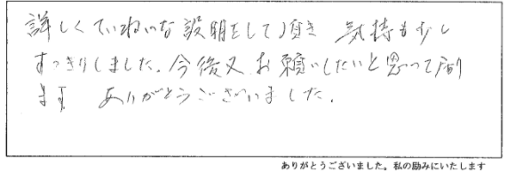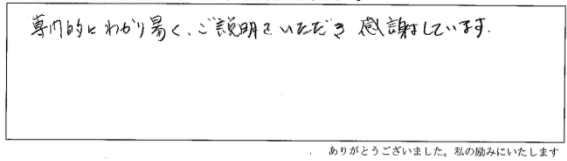 専門的にわかり易くご説明をいただき感謝しています。【お客様の声 NO.827】 -