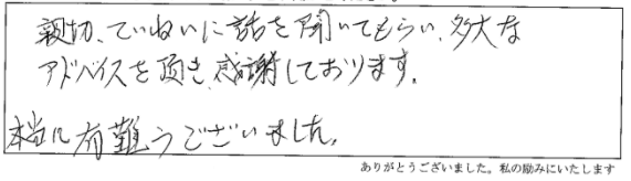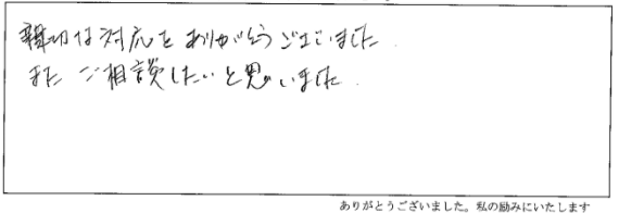 親切な対応をありがとうございました。またご相談したいと思いました。【お客様の... -