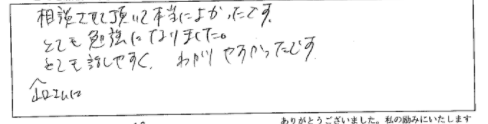 理解しやすい相談をして頂けたと思っております。【お客様の声 NO.804】 -