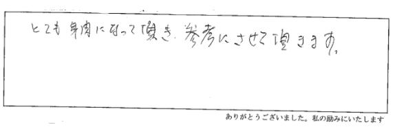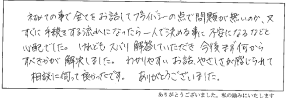 とても親身になって頂き、参考にさせて頂きます。【お客様の声 NO.803】 -