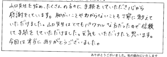 山口先生を始め、たくさんの方々に手続をしていただき心から感謝をしています。細... -