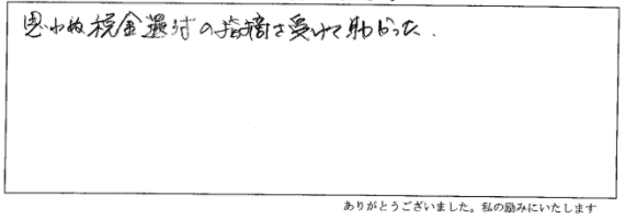 思わぬ税金還付の指摘を受けて助かった。【お客様の声 NO.808】 -