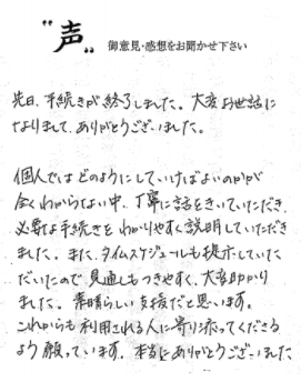 素人には大変な相続手続を代行して頂きお世話様になりました。スムーズに事を運ん... -