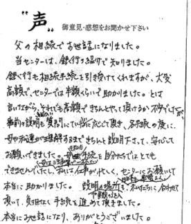 父の相続でお世話になりました。当センターは、銀行の紹介で知りました。銀行も相... -