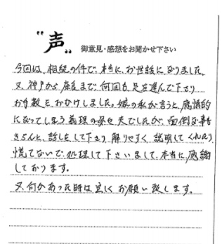 今回は、相続の件で、本当にお世話になりました。又、神戸から奈良まで何回も足を... -